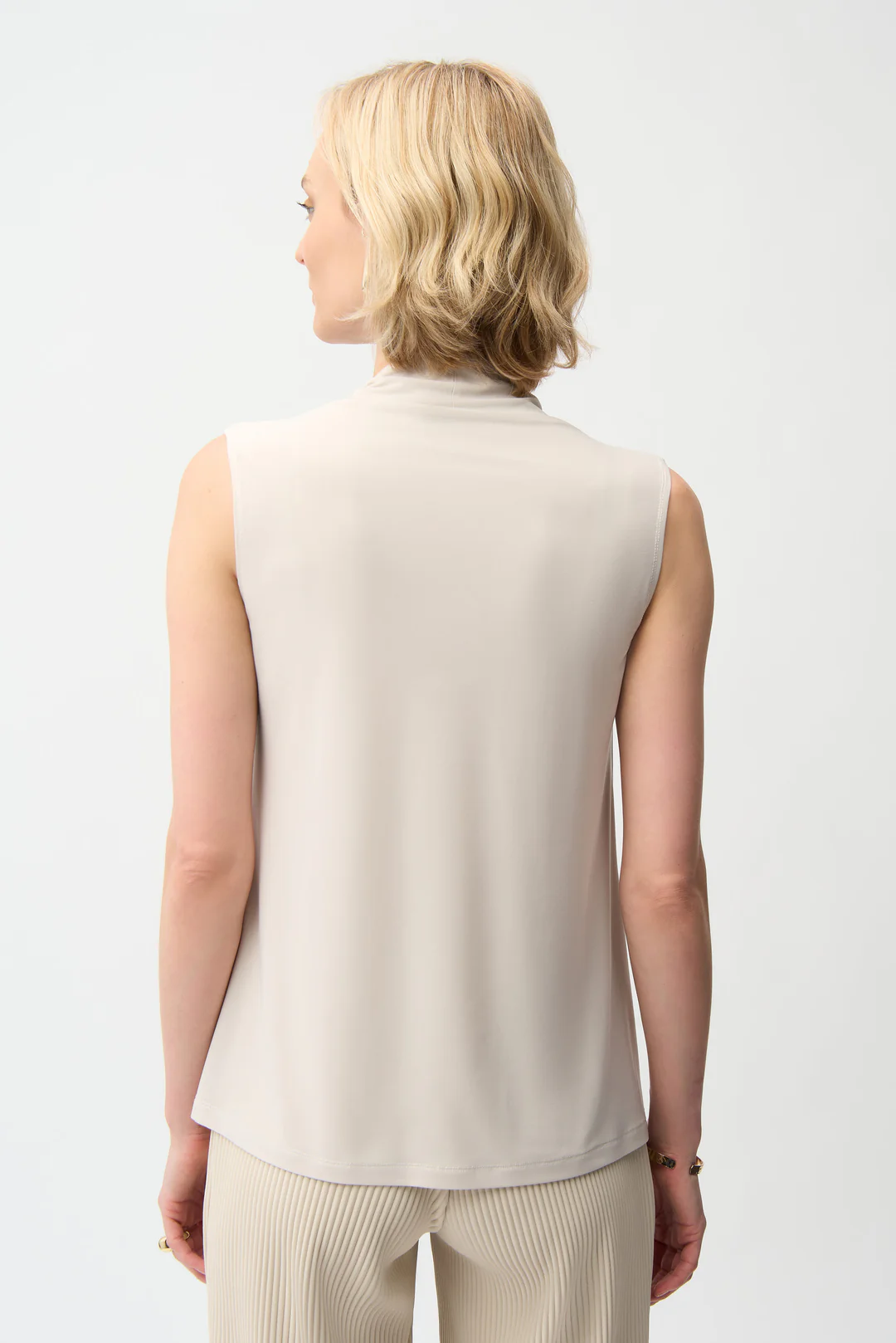 Gracias a su corte relajado y fluido, este top permite una libertad de movimiento que no compromete su apariencia pulida. La silueta sin mangas resulta perfecta para disfrutar tanto en una jornada laboral como en eventos nocturnos, haciendo esta prenda una opción ideal para transiciones del día a la noche.
